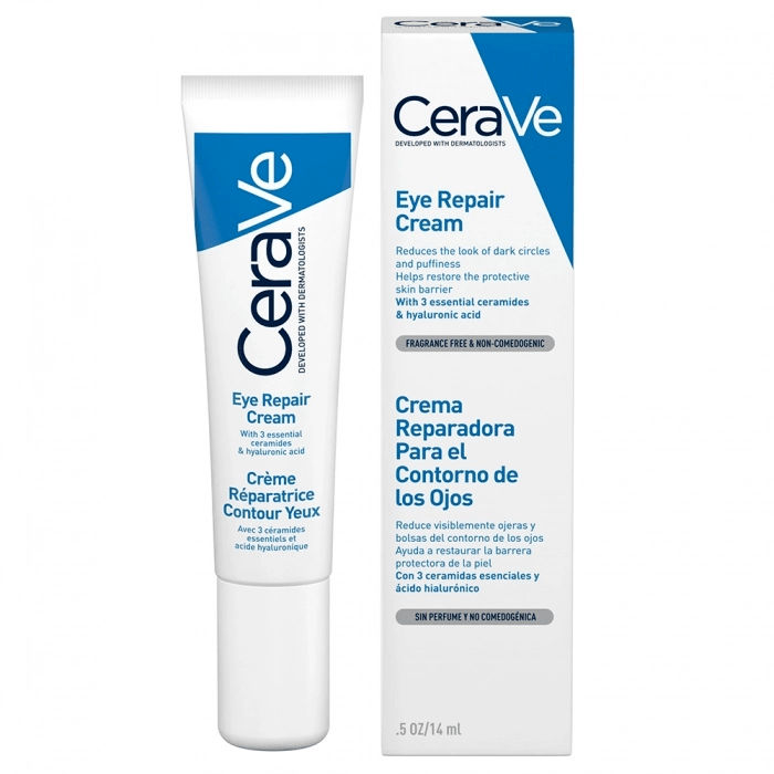 CeraVe Crème Réparatrice Contour Yeux 14 ml développée par des dermatologues, est une crème réparatrice pour le contour des yeux.