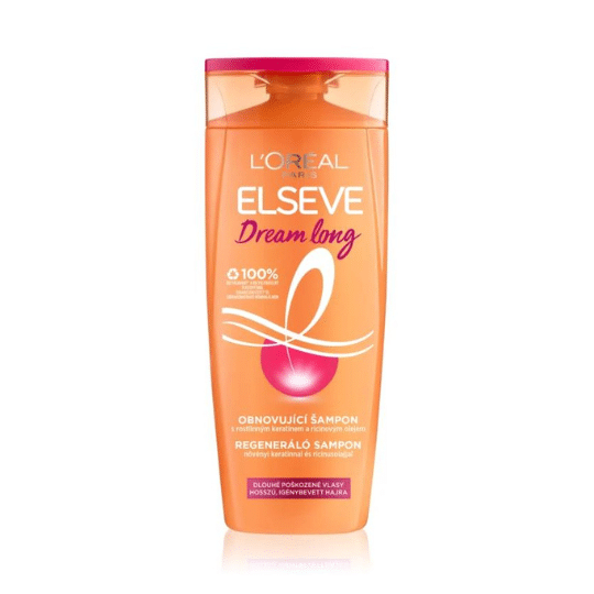Renforcez vos cheveux affaiblis, clairsemés et abîmés, de manière visible depuis les pointes ! La formule unique du shampoing rénovateur L’Oréal Paris Elseve Dream Long sera heureuse de vous aider.