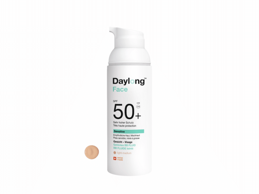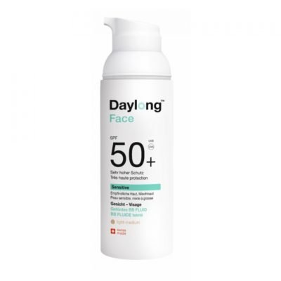 Daylong Face Sensitive SPF50+ BB Fluide Teinté 50 ml est un fluide teinté de très haute protection (SPF50+), spécialement formulé pour les peux sensibles, mixtes à grasses.