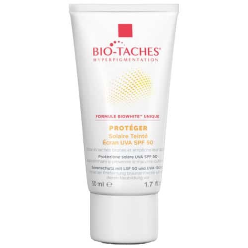 Bio-Taches® Solaire Haute protection SPF50 Teintée est un soin novateur et réellement très efficace pour lutter contre les tâches brunes sur la surface de la peau.